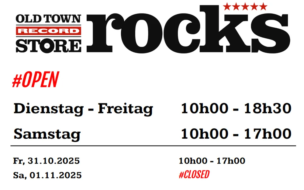 Deshalb schliesst der Old Town Record Store heute (Freitag, 31.10.2025) bereits um 17h00 und bleibt am Samstag, 01.11.2025 geschlossen.